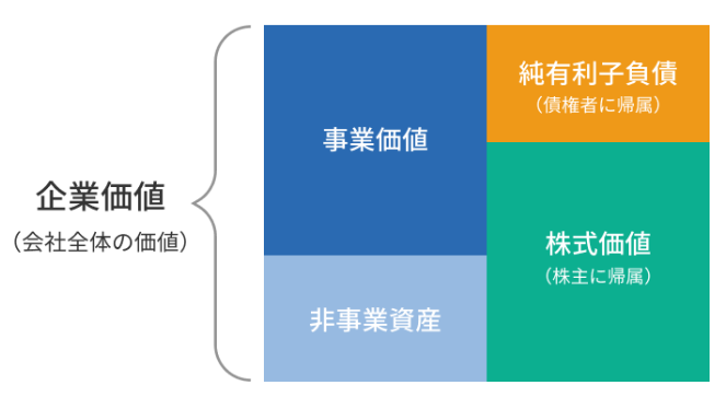 企業価値は、本業の事業の価値である「事業価値」と、それ以外の「非事業資産」の価値から構成されます。